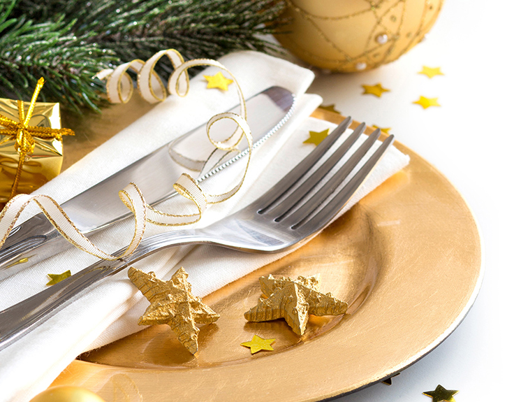 This elegant christmas dinner has a dressy but approachable atmosphere featuring a neutral palette of golds, silvers, and creams and emphasizing texture.